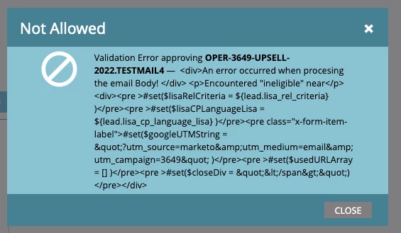 Can not approve email due to velocity script (problem?)