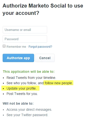 Some of us have opted for the social boost add-on in our subscription. Due to the fact that there has been no innovation or new features added for years, we're probably going to cancel this when our contract is up for renewal in August. One of the other turn-offs of this is the disclaimer window that pops up when someone wants to share content/landing page. As a user, I would not allow a company to update my profile or follow new users on my behalf. In fact, I question if Marketo can even do this. And if so, why is it even included among the language in the disclaimer: