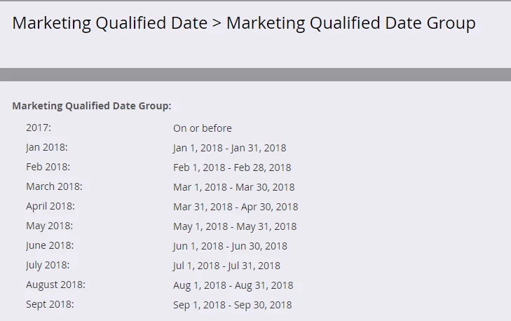 I would like to generate a report on monthly/weekly MQLs by business unit or lead source in RCE, but it does not look like I can group the date fields by month or week. I created a field organizer in lead database, but still cannot find a way to syn it to RCE.