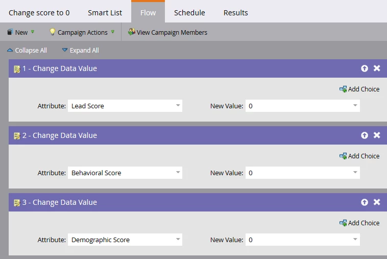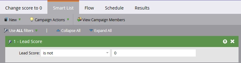 Change everyone's lead score to 0