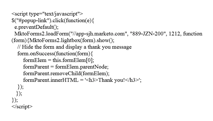 I'd like to set up a form so that it pops up after clicking on a link, but I'm having trouble with the following code.