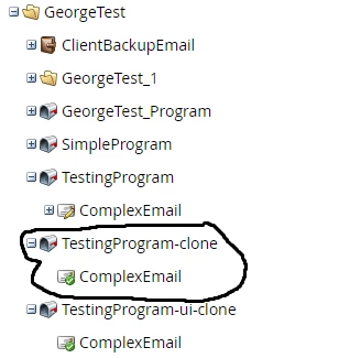 where "folder" represents the folder that I want the program to be cloned in (i.e "GeorgeTest" folder). Of course, using this endpoint worked as expected, and the program was successfully cloned, as you can see below.