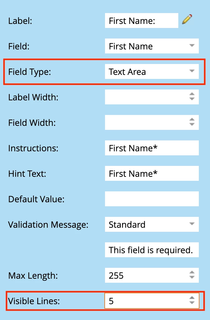 I have created a new form and at the bottom I have a comments field for users to tell us about their project. It looks like the field only shows one line, is there a way to have it show something like 5 lines?