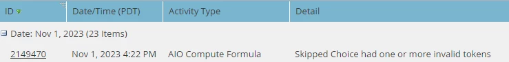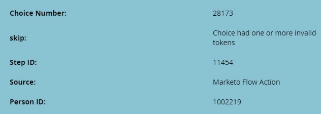 "Skipped Choice had one or more invalid tokens"
