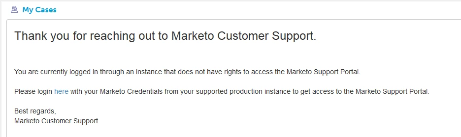 Could not Reach Support UI 'My Cases'