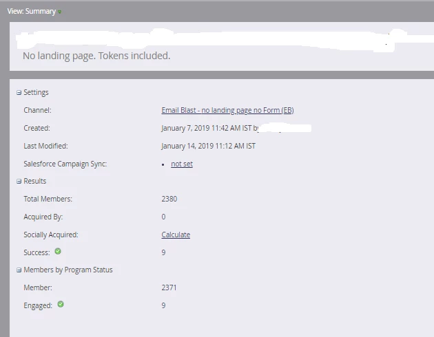 Success - The purpose of a program is to create a meaningful interaction with the person or prospect. Success is marked when a person reaches the status that achieves that goal. An example would be if a person clicks on a specific link in a marketing email or successfully registered for a webinar, we can mark these actions as program success criteria. So the Success tab really shows the total number of people who achieved this desired success criteria