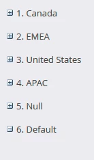 Hi there, we are using dynamic content on a LP that's based on country. We recently updated out country segmentation to include all APAC and EMEA countries but we've been receiving reports from some of our employees in Australia and Europe that they are not able to see the dynamic content. After some digging it appeared to be an internal issue with those records at first glance because some of them had country listed as USA even if they were located in the UK or Australia. But then our Australia office kept reporting that they are still not seeing the content. Their record shows country as Australia, so they should fall under our APAC segment for the LP. However, when I look at the segmentation in MKTO, it doesn't look like there are any matches for the segmentation at all and when I look at my colleague's record and pull in the country segmentation field it actually shows empty, like MKTO doesn't recognize that she is in Australia and should belong to the APAC segment. Does anyone know what could be causing it? I've read some comments about the segmentation order having an impact but it's all just country. Here's our current order: