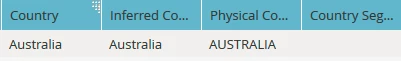 Here's an example record where it clearly shows country = Australia but the country segmentation field is empty.