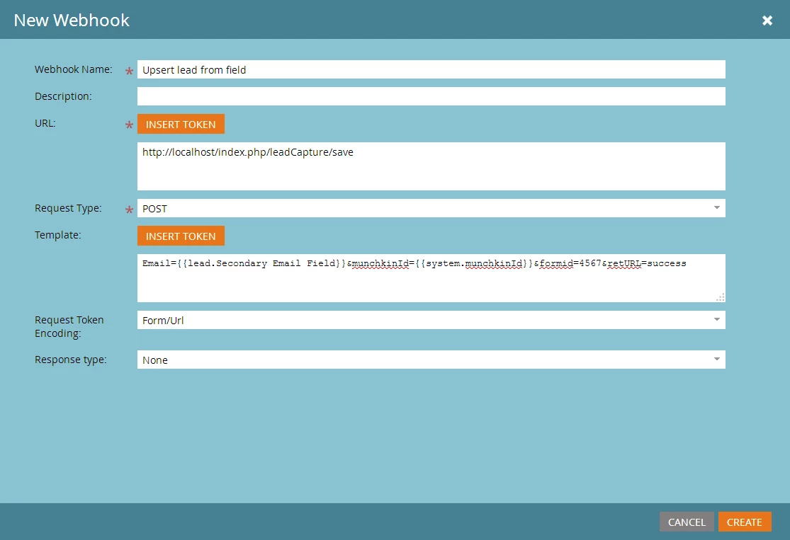 Also note the webhook definition above is actually an upsert (merge or insert). If it encounters the same email address more than once, it will not add more and more new leads. I assume that's the desired behavior. (Not always creating a new lead with a duplicated email address, every time.)
