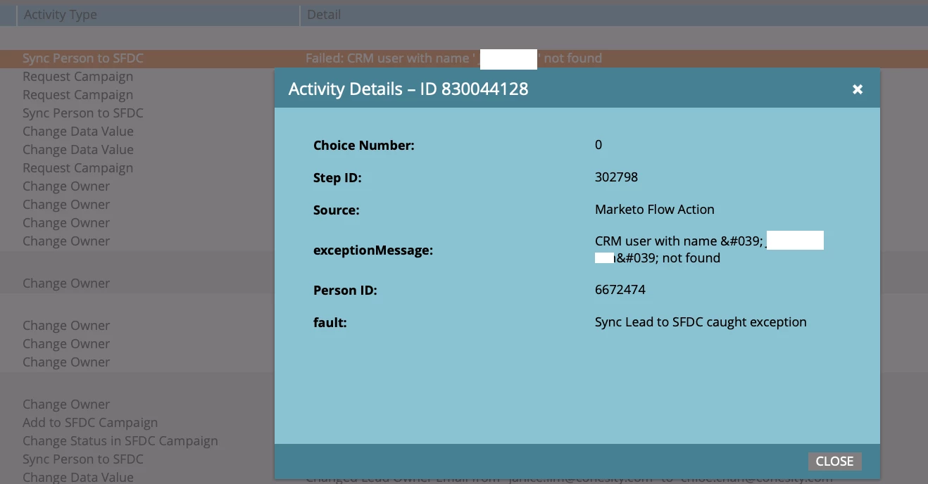 I have encountered an error that where the Lead is unable to sync to our CRM (Salesforce) because the user cannot be found.