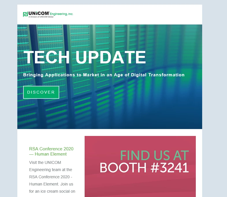 I've also copied in a pic from my boss' Outlook - her hero image (a blue/green rack of servers) is cut-off as the width is cropped. it may be the code, but I've test sampled this thing on many different computer and hers is the only error I've found. (See below).