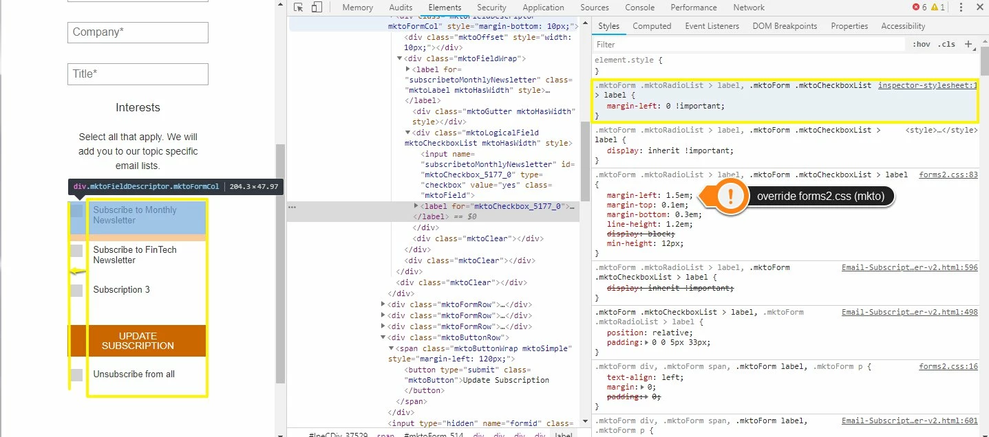 We're trying to embed a Marketo form on our website. The form will have First name & last name in first row, two columns & email address in second row/one column covering entire width of the page.