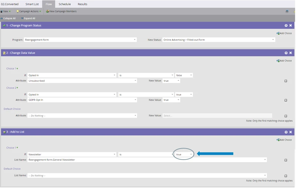 Hello! I am currently trying to complete a re-engagement campaign within our database. The team has created the form and I am trying to set up the parameters within the campaign flow. If a user opts in to receive additional communication from us, a list of newsletter options appear. I want to make sure that when a user opts-in and clicks on a certain newsletter that it gets moved into the right place and updated on the back end. Right now, the custom "newsletter" field only displays true or false not the various newsletter options. What would be the best way to update this?