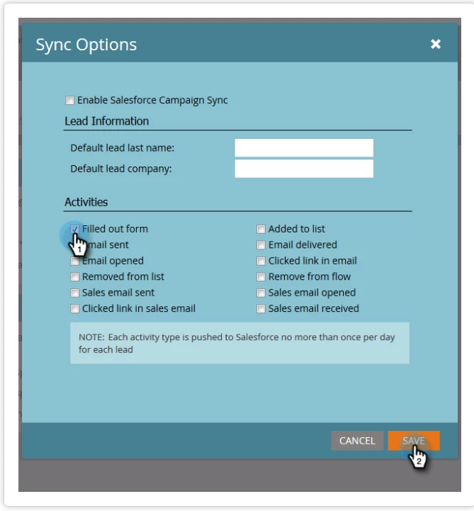 Under the activities sync option, there is a note that states: "Each activity type is pushed to Salesforce no more than once per day for each lead." Any ideas on specifically what is meant there?