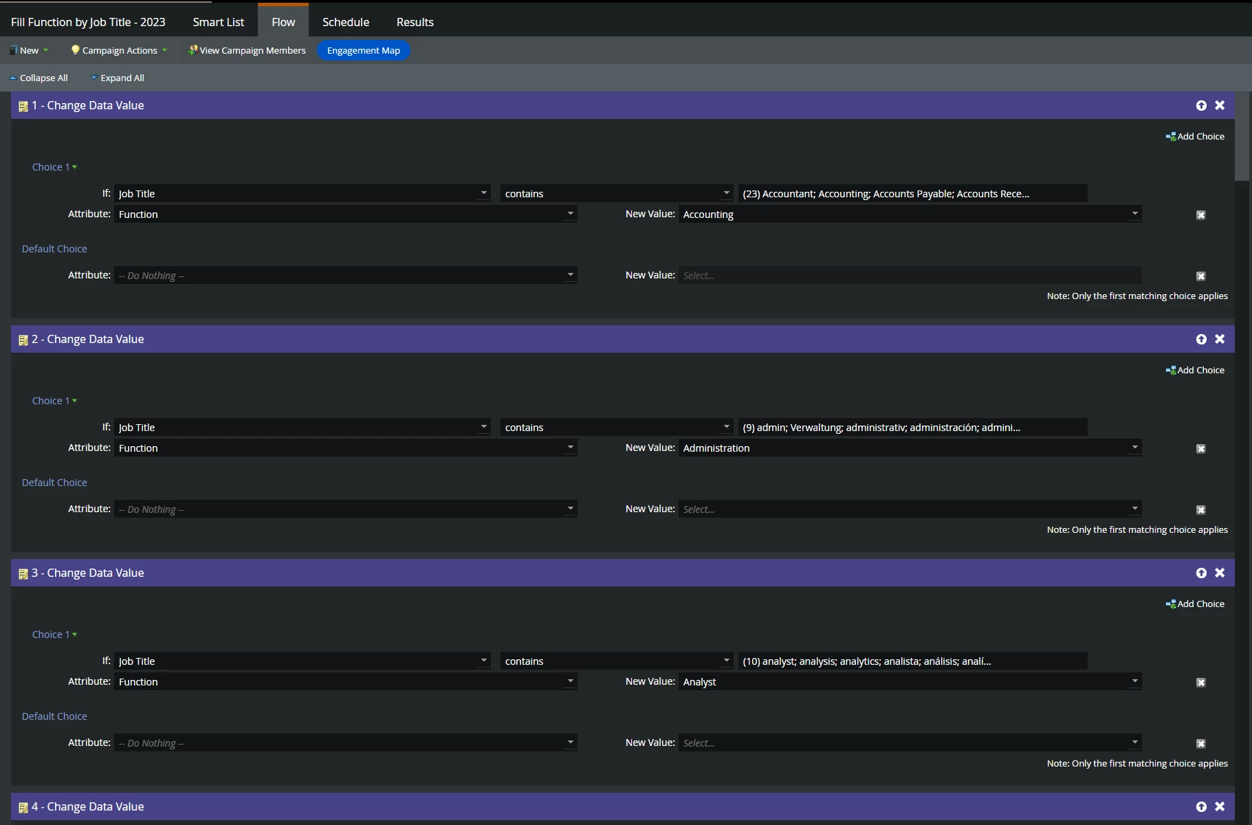 - Smart list: Function is empty or "other/unknown" AND Job Title is not empty.