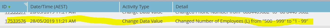 Is there a way to create a report on all people whose company size details were edited on a particular date, rather than going into each individual record? e.g.