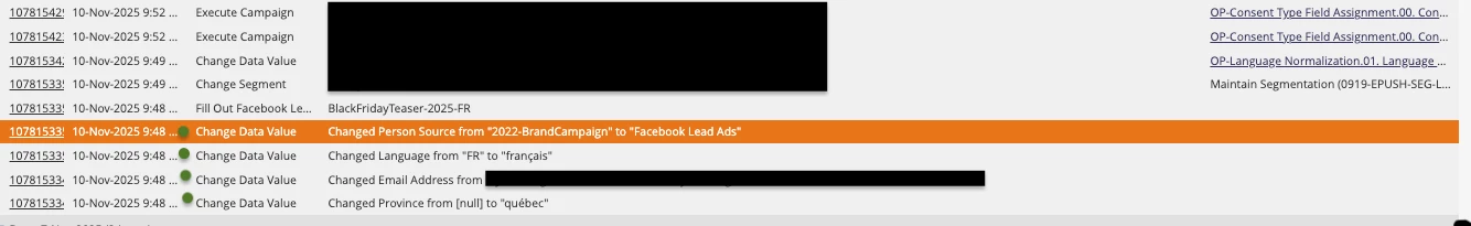 happy hump day! i'm trying to understand where the data value changes (green in screenshot) are occurring. it is not happening via smart campaigns (this is usually how I handle data value changes) but rather via the Web service API. Are facebook lead ad forms considered Web Service API? tia!