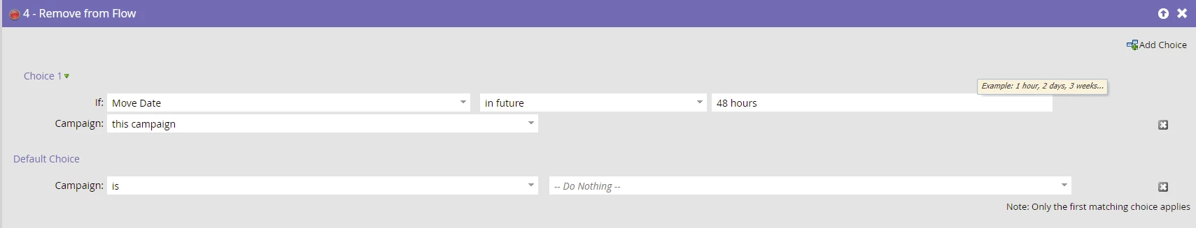 So, can I program the logic to be send first email, wait, remove flow step if their *move date field* is X amount of days away (48 hours maybe?). If I can't do it with just the fields, how may I accomplish this?