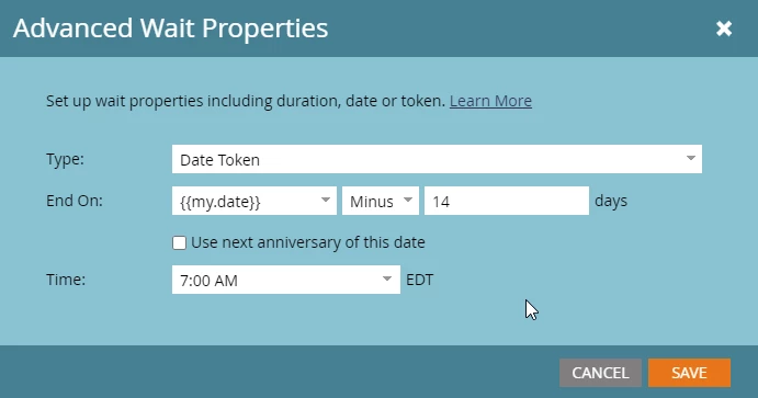 Date Token at Program level used in Wait Step