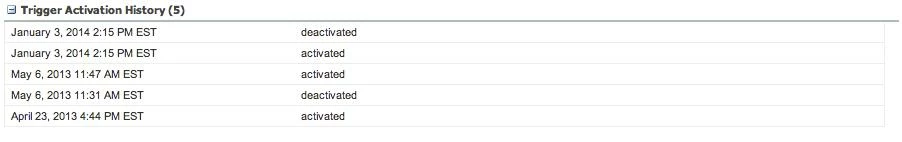 Also, when I go to the Schedule tab it's only showing a 'deactivate' button even though it shows under the 'Trigger Activation History' that the trigger was deactivated. Is this to be expected?