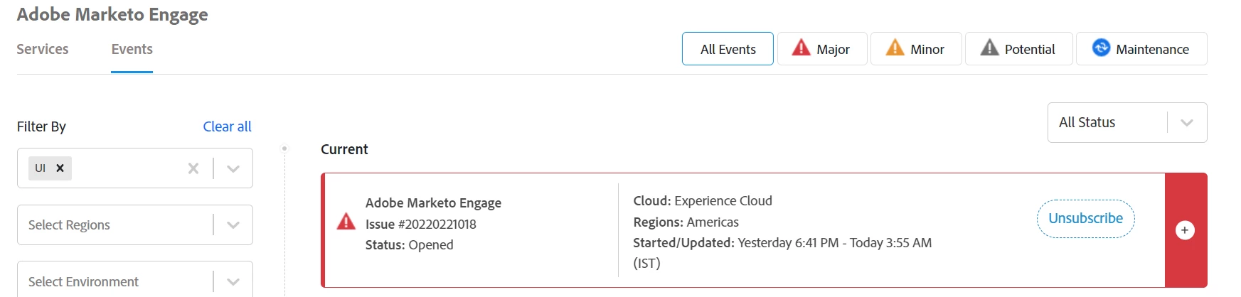 I just check this link https://status.adobe.com/, and it mentions some features of Marketo not working.