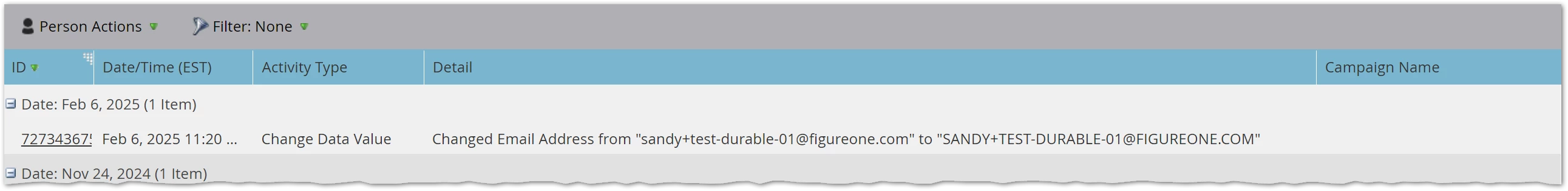 Likewise for case changes to First Name or Last Name, or accent adjustments like “Rege-Jean” to “Regé-Jean.” To be clear, it’s not that these changes aren’t significant[1] and obviously they must be saved to the database. And logging individual changes is harmless anyway, resource-wise.