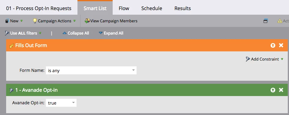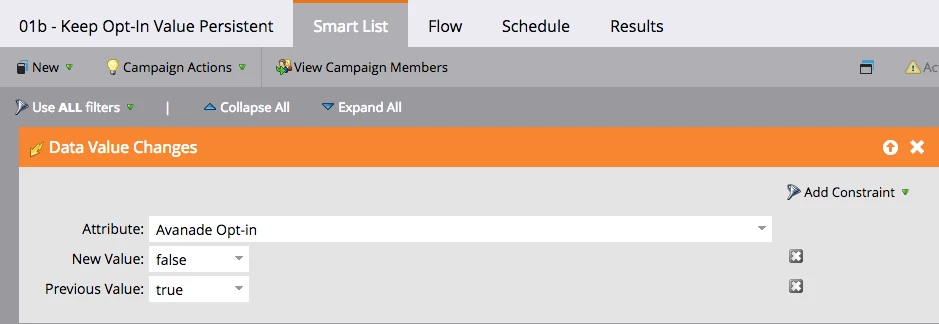 - Same idea as above with inverting logic to capture changes by Marketo user/flow
