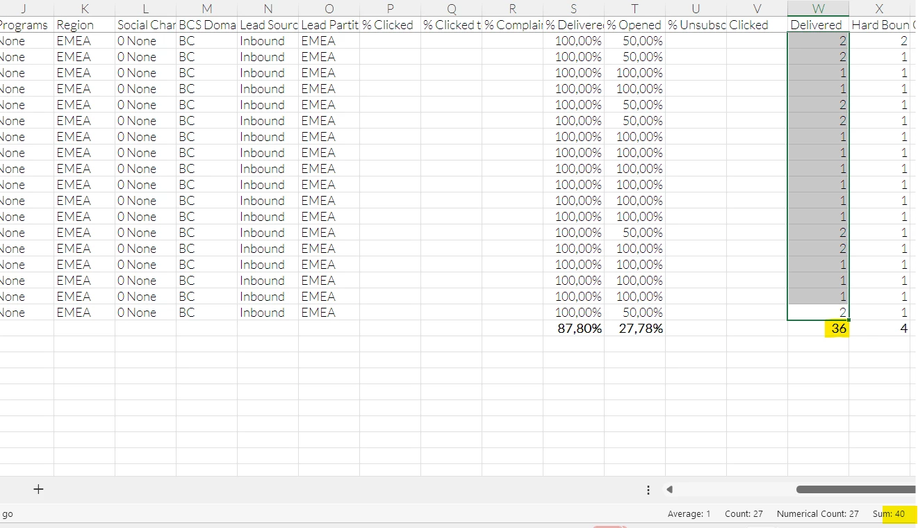 I noticed several discrepancies when replicating the same reports between Classic Revenue Explorer and Power BI Advanced Analytics when analytics Emails Open, Sent etc... For most campaign the discrepancy is relatively small +/- 2 over thousands of emails sent but for one campaign i have more, like 35 Delivered Emails on Classic Revenue Explorer and in Marketo Email Performance whilst i have 40 in Power BI Advanced Analytics.