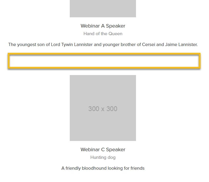 I 've placed the below "opening" and "closing" tokens around the module in order to show/hide webinar speaker data:
