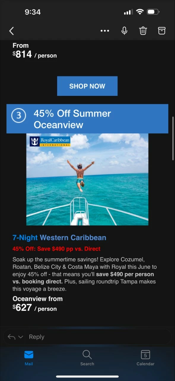 However, after updating our master email template and pulling the new module into a clone of a clone of a clone (times 40 emails or so) that uses that master template, the module did not work as intended. A previous fix I had applied to the hero image to ensure it expanded the full width of a mobile device in the Outlook app did not work, and there was another weird issue where the number and headline text were aligning center instead of staying left-aligned as shown below:
