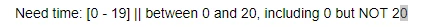 Need time: [0 - 19] || between 0 and 20, including 0 but NOT 20
