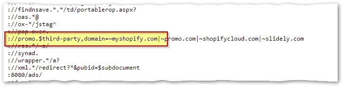 Why? Because these subdomains are on the EasyList General block list — a database used by the popular AdBlock plugin and others of the same ilk. Here’s the relevant entry for promo.example.com on the list: