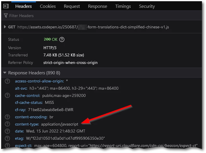 You see, they were just opening https://assets.example.com/translations/simplified-chinese.js directly in Chrome, which looks like this: