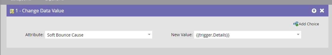 Step 4: in the flow you add the step "change data value". The attribute is the field you have created in step 1 and for the new value you select {{trigger.detail}}