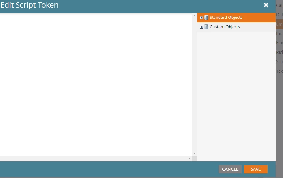 Recently when attempting to add a script token, the right hand menu of standard and custom objects won't expand. How do we fix this? See screenshot.