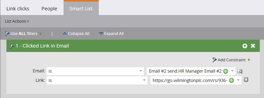 Hi, we're running a smart campaign and from the email link performance we can see that 5 people have clicked on a link to download an asset (image 1), however, when I run a smart list to see who has downloaded the asset it doesn't return any results (image 2). There was also a separate smart campaign flow that was supposed to push any clicks in to a Salesforce campaign but no one has been pushed through that either, which was what made us question this. Can anyone explain why those 5 people that clicked aren't showing up anywhere?