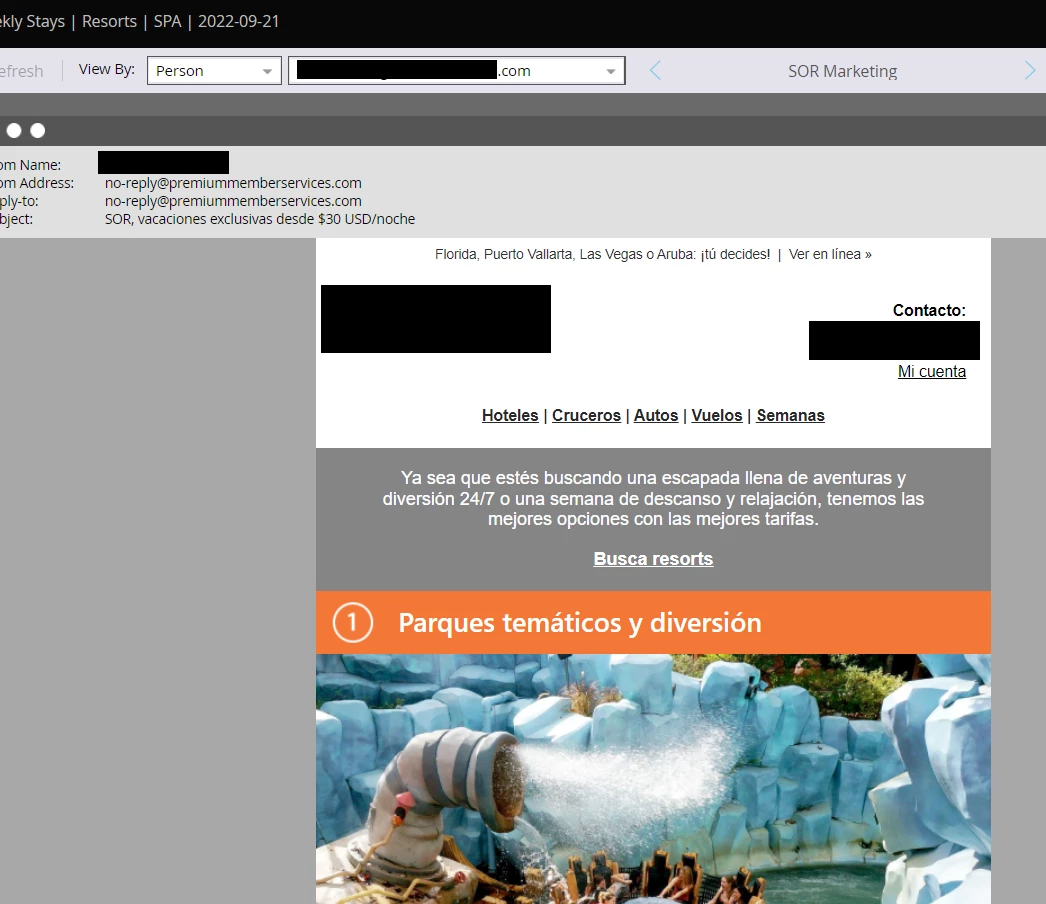 The error is ONLY appearing when viewing the email and clicking on the links in preview mode, not in test emails sent to our team: