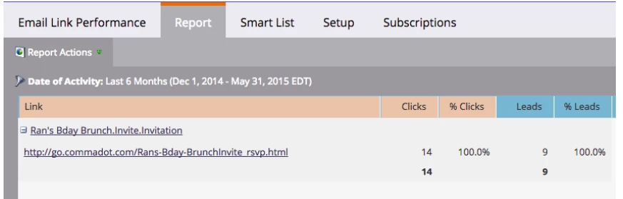 Email name is not shown on Email Link Performance Report