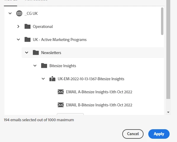 I am trying to set up my weekly email reporting, but am struggling with the new setup of the email filter. The filter tells me how many emails are selected, but doesn't visually show which these are. Up until this week, the setup tab had check-boxes beside the selected emails. I am generating a report for a large number of specific emails, so can't select entire folders. Does anyone have any advice on how to work around this?