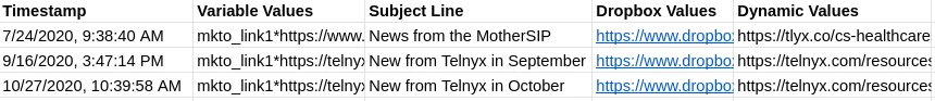 You might have noticed the “mkto_link#” placeholders in the “Value” column. These placeholders will be replaced with URLs to the images hosted in the Design Studio (Step 10) after the images linked in the “Dropbox” column have been uploaded to Marketo using the API (Step 8 and 9).