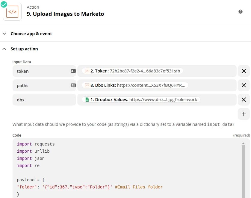 9. Upload the images straight from Dropbox to Marketo using the links for each image obtained from Step 8 (upload_images.py).