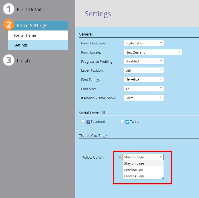 Embedding Global Forms on landing pages - setting destination URL