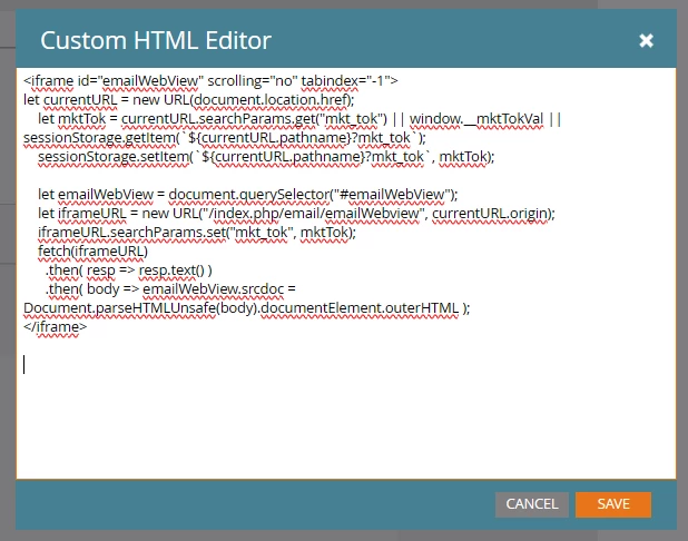 Another: if the end user refreshes the page, there won’t be a mkt_tok and the VAWP will respond with Cannot get email content (same way it always works). Persisting the mkt_tok in Session Storage takes care of that.
