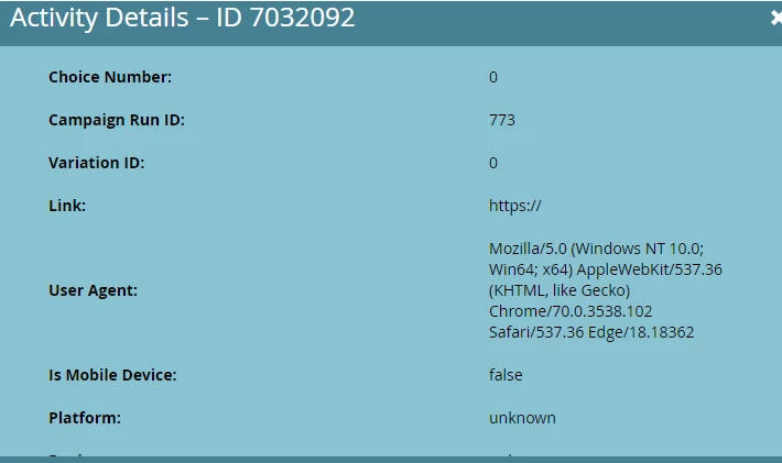 I'm seeing some weird activity in several of our customers' activity log in regards to links being empty. In one example, a customer's activity log shows a click email activity type, but diving deeper to find out what link was clicked, all we see is an empty link. Below is a screenshot of the activity details.