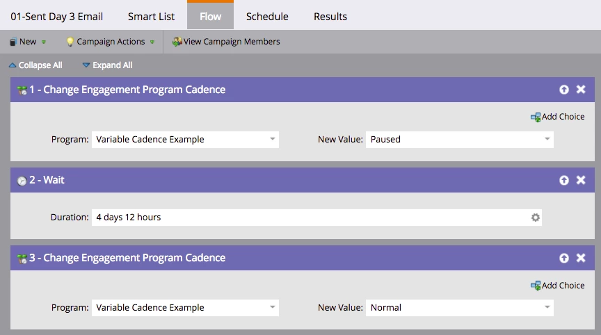 Hi @Erik Heldebro - Great hack for variable cadence! I set up our engagement nurture exactly the way you outlined but ran into a problem. Leads in our cadence smart campaign never resumed back to 'Normal' after the waiting period is over, so they never received the second email.