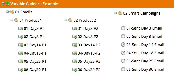 I've seen a lot of questions about variable cadence on the community. I was overjoyed seeing Marketo's announcement of this feature (screenshot above from summit slides) on the Summit this year. There is still some time remaining until that so I figured I will share this method. This has been tested for a few months and is proven to work given the right setup.