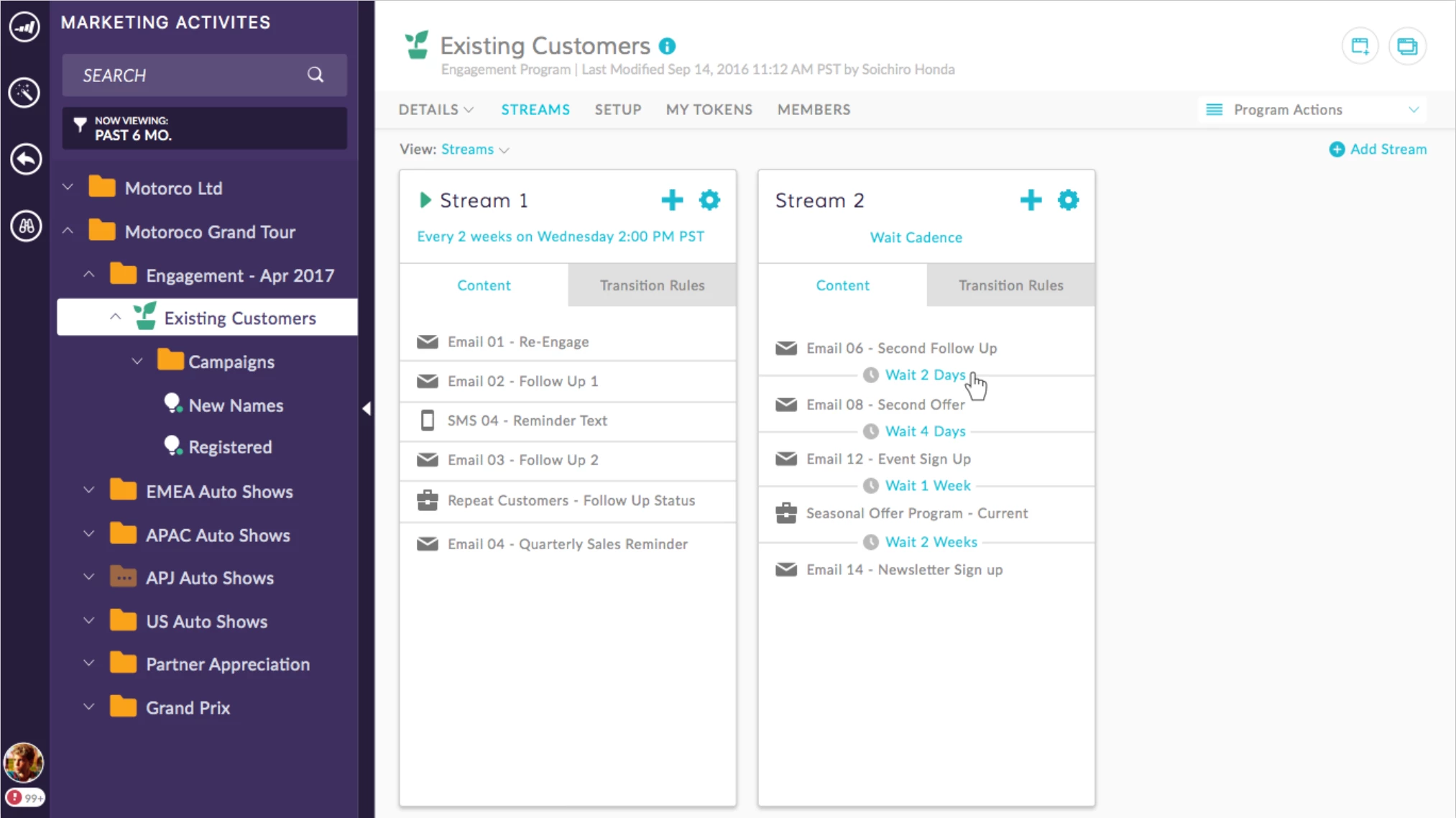 • Setting up an Engagement program for one product and using one stream per day: This was a similar setup to the one given here, it worked for the most part but was just a pain to maintain and resulted in a lot of notifications