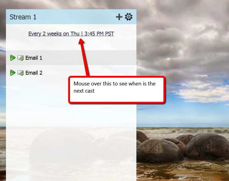 About to activate my very first engagement program! Question regarding the stream cadence, I setup to have content send out every 2 weeks on Tuesday. When I add people to the stream (batch add), will they get the first content 2 weeks after the first add? or that first Tuesday?