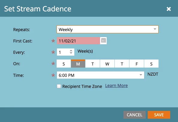 I've been setting up several engagement programs lately. Having watched the training videos in Core Principles 1, I believe I have set up my engagement streams according to best practice. However, the 'Stream Cadence' set at weekly has never worked.