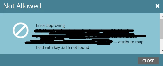 - attribute map field with key 3315 not found